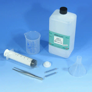 Acessorios para iniciacao de aox contendo: 1 par de pinças, 2 funis, 2 copos beckers, 2 varas de vidro, 1 adaptador, 1 frasco em polietileno, 2 seringas