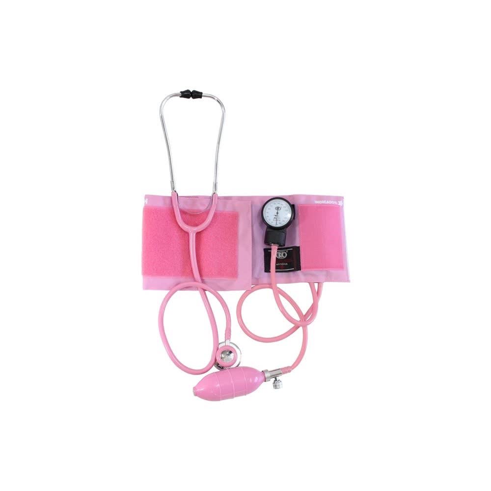 CONJUNTO APARELHO DE PRESSÃO NYLON VELCRO + ESTETO DUPLO ROSA BIC CE0727