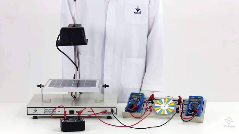 Destinado ao estudo de energias renováveis, energia solar, rendimento de um painel fotovoltaico, vantagens do uso do acumulador de energia, conversão de energia luminosa em elétrica, conversão de energia elétrica em mecânica, curva característica de um painel fotovoltaico, etc.