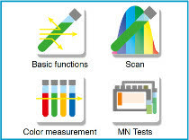 – Ferramenta para varredura espectral e funções básicas para leitura de absorbância, transmitância, cinética, fator, padrão (calibração de 2 pontos) e turbidez nefelométrica