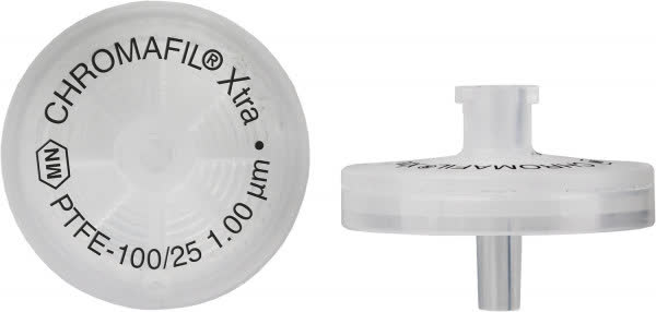 Filtro p/seringa CHROMAFIL XTRA em TEFLON(PTFE), carcaça em PP, diâmetro de 25mm, poro de 1,00µm, caixa c/100 peças