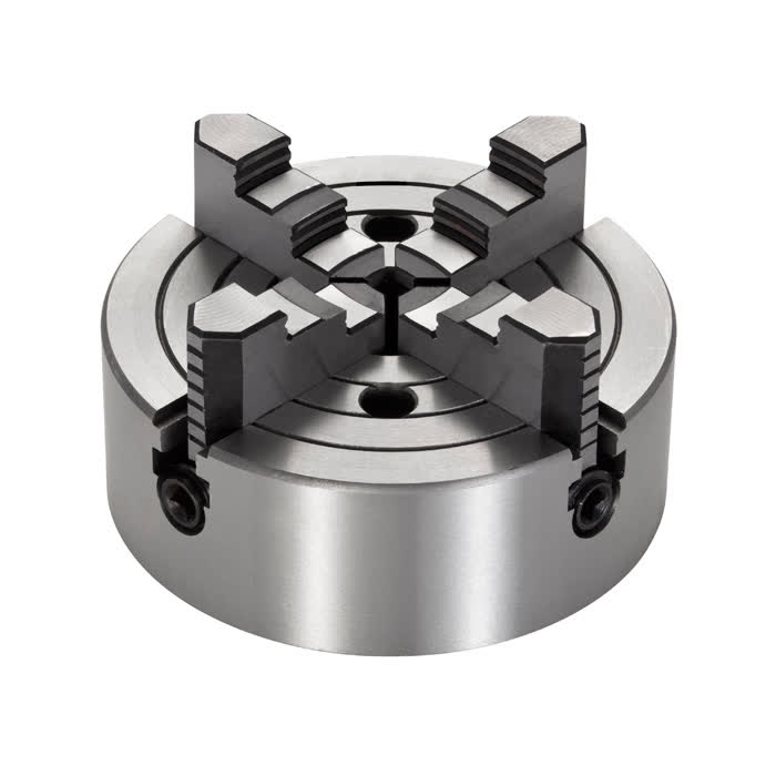 Corpo em ferro fundido e castanhas em aço temperado. Possuem 4 castanhas com fixação independente. Fornecidas com um jogo de castanhas revesíveis (para fixação externa e interna).