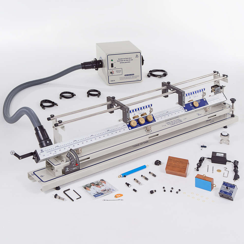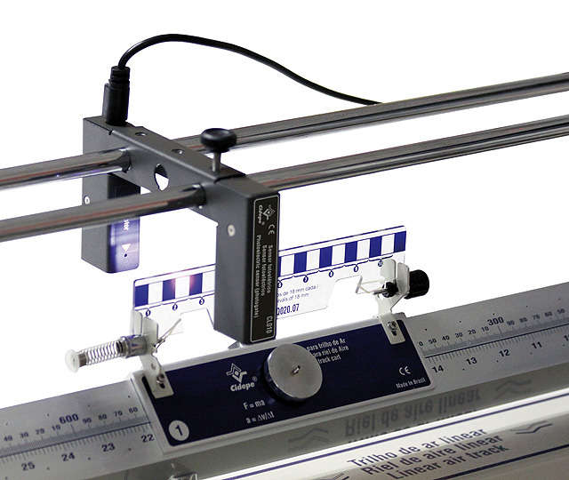 Destinado ao estudo experimental, laboratório de física e realização de experimentos de física sobre: movimento em uma dimensão, trajetória, deslocamento, velocidade, aceleração, equilíbrio do ponto material, forças de atrito, primeira lei do movimento de Newton, MRU, MRUV, quantidade de movimento linear, conservação da quantidade de movimento, coeficiente de restituição, colisão inelástica, colisão elástica, segunda lei do movimento de Newton, impulso, etc. Necessita ser conectado a uma interface.