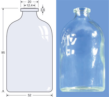 VIAL S/R N20-100 DIN INCOLOR 52X95,1MM 100ML C/88PC